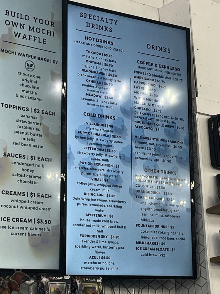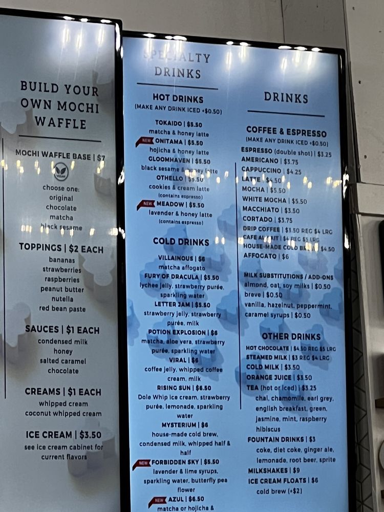 black sesame waffle + strawberries, condensed milk, whipped cream (gluten-free)